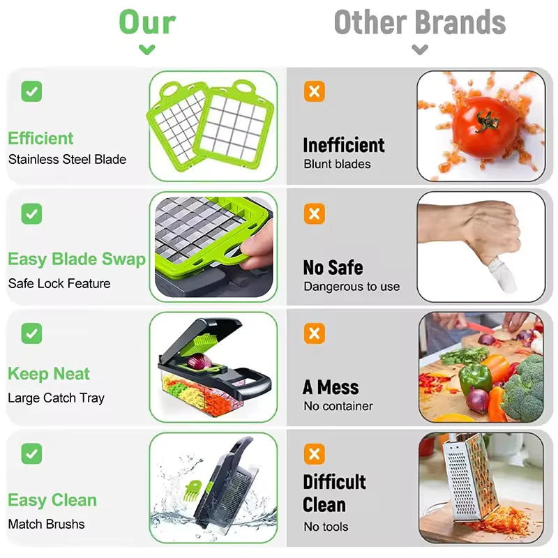 Safe & Easy to Use:‎ ‎No more worrying about accidental cuts. The built-in finger guard and secure design protect your hands, making chopping safer and more enjoyable for everyone, even kids learning to cook.****